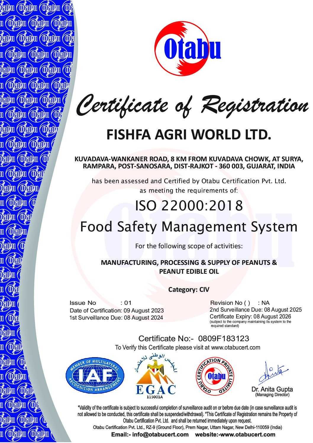 Peanutji is brand of Fishfa Agri World Ltd, it is certified from world’s most recognised institution like US FDA, EU, APEDA, FSSAI, ISO 22000:2005 and HALAL. Hence peanutji’s parent company Fishfa Agri World exports peanuts to more than 25 countries.